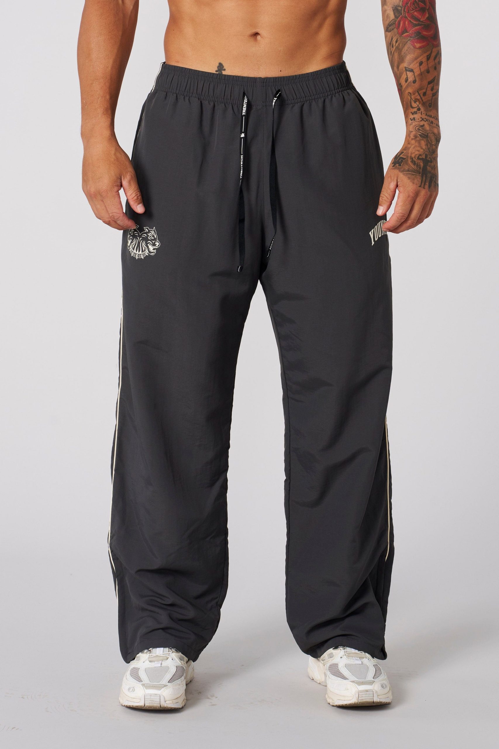 DESIGN: The sweats embody old-school style with their loose-fitting design and vintage aesthetics. Crafted from durable polyamide, these joggers ensure long-lasting wear. They feature no cuffs and contrasting side pipes and bring a unique and stylish flair to your ensemble.