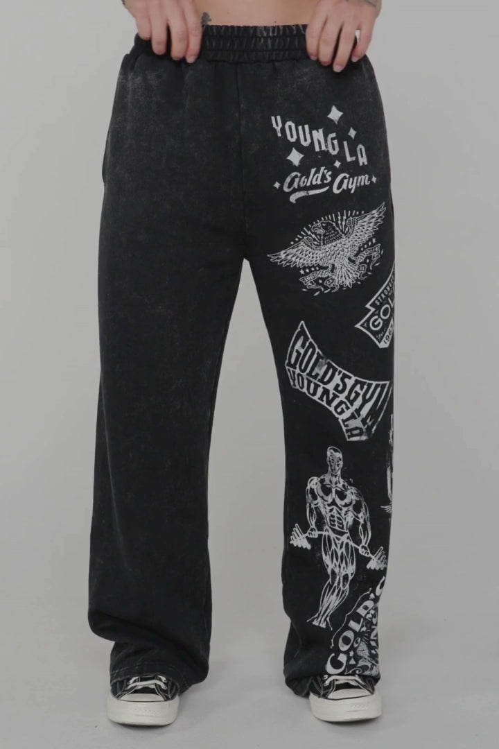 DESIGN: Experience the perfect fusion of iconic style and modern comfort with the Gold’s Gym x YoungLA collaboration joggers. Designed with a relaxed, baggy fit and a no-cuff bottom, these pants offer a fresh, contemporary look. The acid-washed fabric gives a vintage vibe, while the bold prints of the classic YoungLA and Gold’s Gym logos on one leg make a statement.