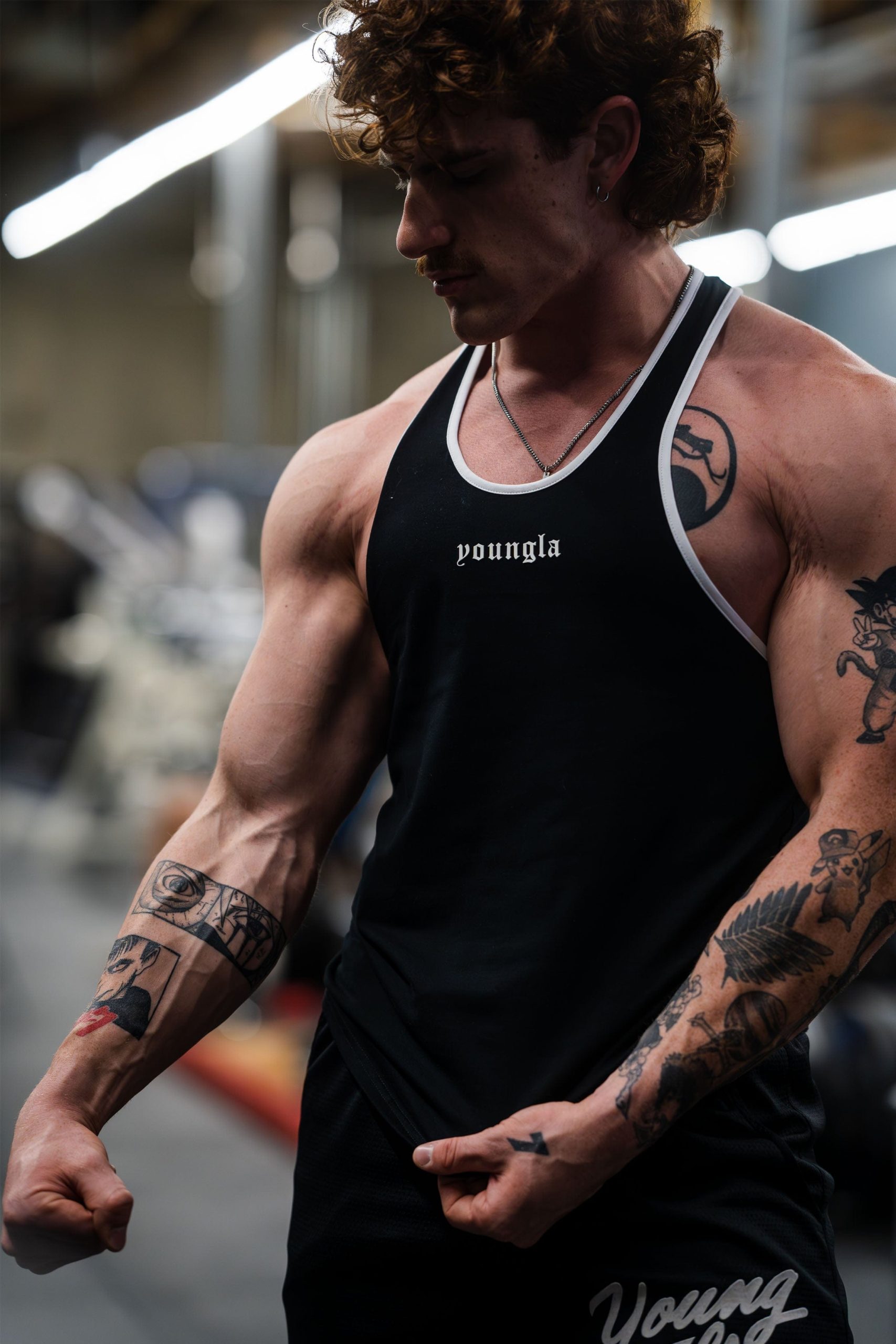 DESIGN: Introducing the Golden Era tanks. Made with the same fitting as our 334 New Gen stringers, the tanks are made with contrast piping throughout. The cut and fit are contoured to sit perfectly on your physique. Additional features include a racerback cut and a slightly curved hem.