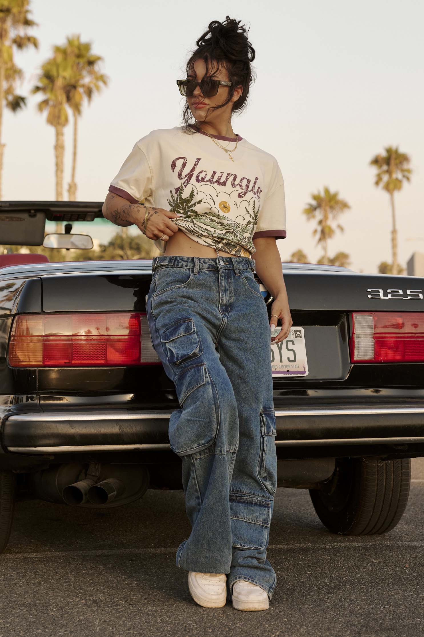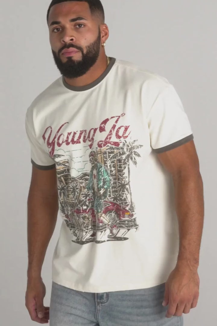 DESIGN: This ringer tee features classic retro-style prints that make a bold statement. The fitted design perfectly highlights your biceps and upper body, giving a flattering and confident look. With contrast collar and sleeve hems, this tee combines comfort and style, making it a go-to for casual outings or a laid-back day.