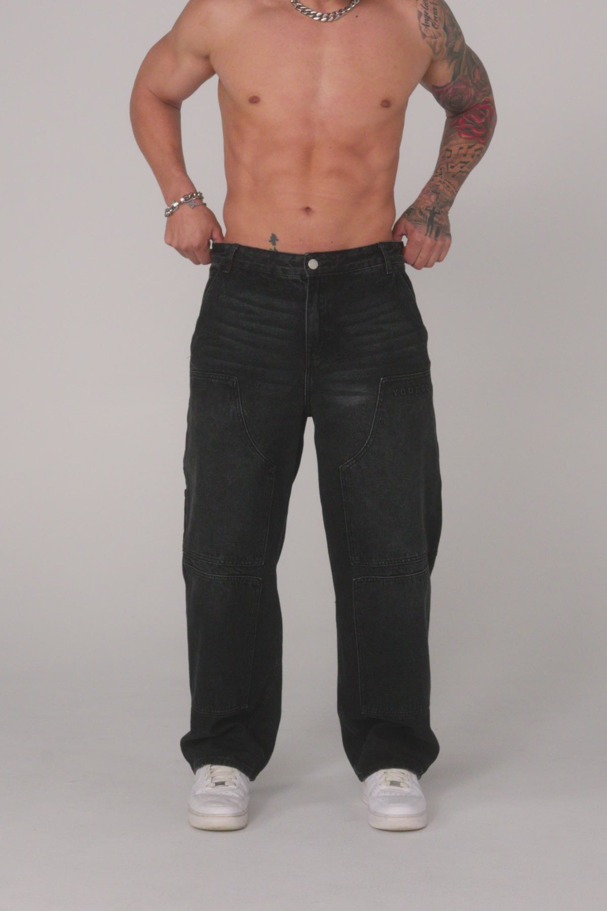 DESIGN: The Workwear Jeans bring rugged utility to everyday streetwear. Crafted from heavyweight 415 GSM cotton, these jeans are built to last while keeping comfort in check. The baggy fit gives them a relaxed, effortless look, perfect for pairing with sneakers or boots. With reinforced panel stitching and subtle branding, these jeans blend classic workwear elements with modern street aesthetics.