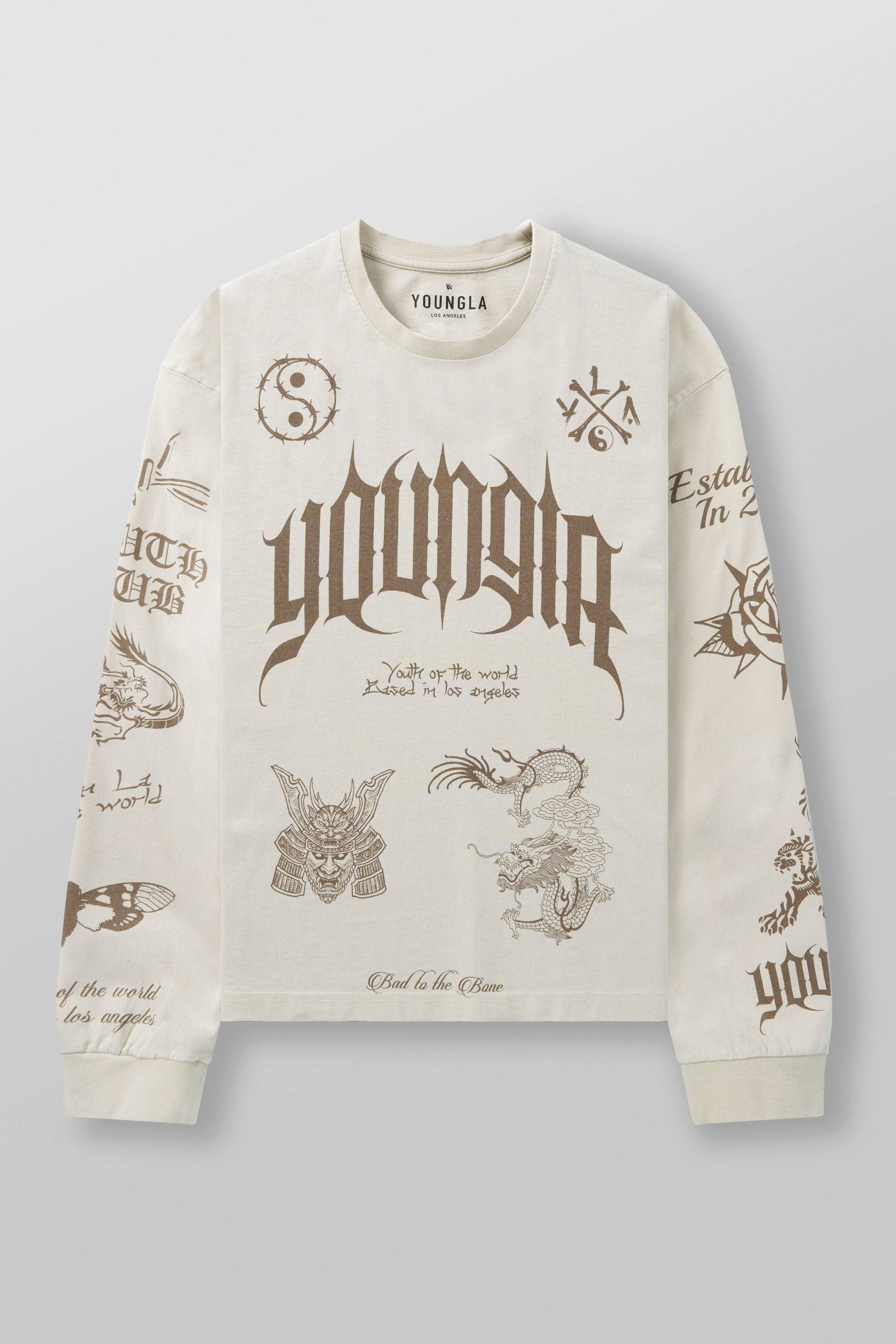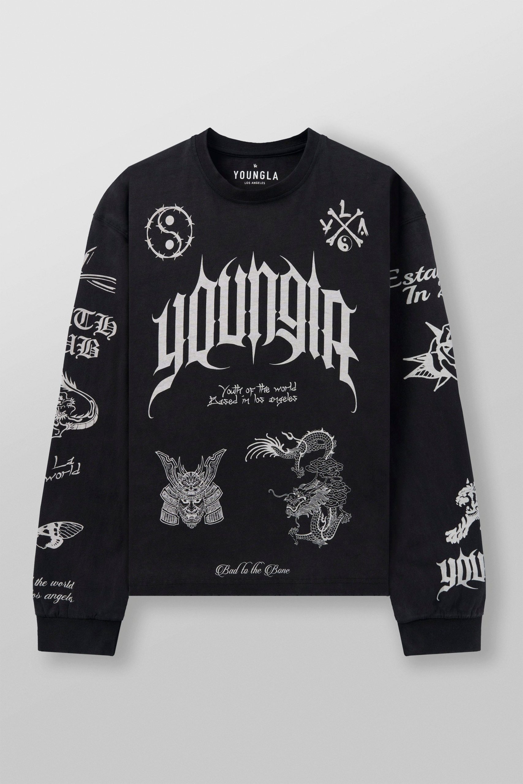DESIGN: Own the look with these rugged, loose-fitting long sleeves. Crafted from durable 270 GSM, 100% cotton fabric, these tees bring serious attitude. The front and sleeves are decked out with aggressive, in-your-face graphics, making this shirt an unapologetic statement piece.