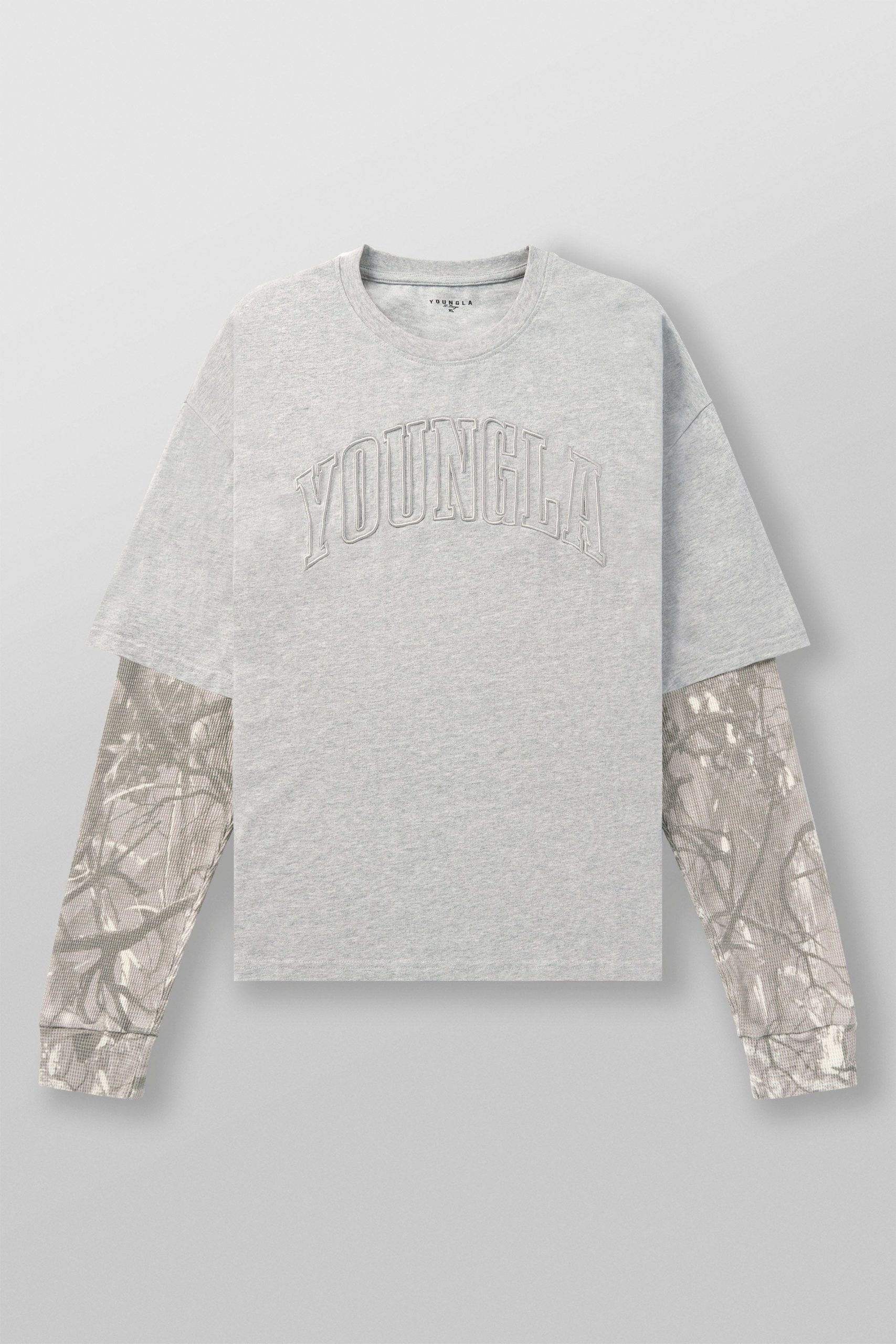 DESIGN: The Tree Camo Twofers feature a soft cotton base with camo-patterned sleeves available in three designs. Cozy and comfortable, these long sleeves are perfect for layering in the fall, combining style and warmth for a laid-back, outdoor-inspired look.