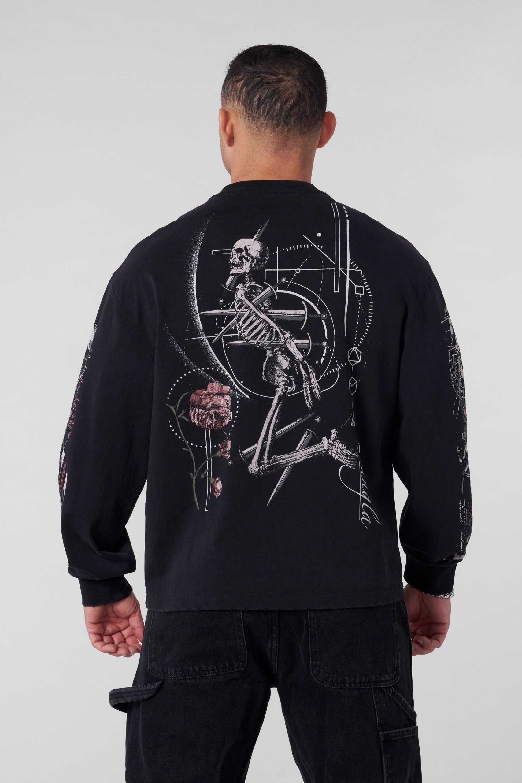 DESIGN: Crafted from 100% heavyweight cotton (270 GSM) for a premium feel and lasting comfort. Featuring intricate occult-inspired graphics on the chest and sleeves, this piece merges streetwear edge with artistic expression.